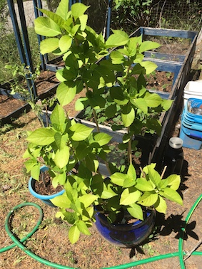 The hydrangea seems to have recovered from being feasted on by a deer family last year. No sign however of any flowers beginning to form. I now have a sneaking suspicion that it might have needed some food. Must check with Rhodo Dave. (Yes, I know it’s not a rhodo, but he probably knows.)