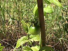 The first cherry tomato has appeared and there are lots of flowers on this and the other two plants.