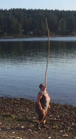 Yes, a woman managing to balance a very long stick on her chin. Impressive, eh?