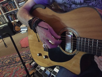 Of course, by the time I’d received his reply, the cold had put me back under the duvet, so it was a couple of days before I sat down to give it a go. And when I did, I could not find the gizmo. It wasn’t in the guitar case, where I was certain I’d put it. Where the hell was it? Checked under the sofa and chair. Checked under the cushions (unlikely, but who knows?) of the sofa and the chair. It had completely disappeared. I was so frustrated I started crying. (Okay, I blame the cold.) Felt as if the gods were laughing at me. (Ha, ha, ha. You playing the guitar? Ha, ha, ha.) Sent a message to Ben, who said he had another one I could use. He had doubts about the only scenario I could imagine: Someone sneaking into the house while I was out, ignoring the laptop and tablet, instead stealing only the tuning gizmo. I agreed it was unlikely. Obviously it was gremlins.