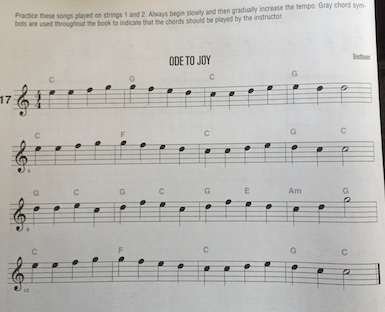 Be still my beating heart! This all started with Beethoven. Could Ben teach me to play Für Elise? Early days, but I was already beginning to have my doubts. But this! This is Beethoven – and it only requires two strings and two fingers! Oh, my god!