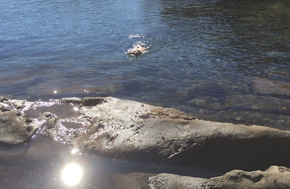 So, instead of a half hour stroll, we spent an hour and a half there, most of it sitting on a log, throwing things in the water for a very happy Georgie Girl.