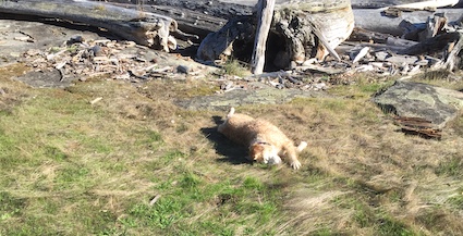 Along the way, Georgie got to dry herself off a bit, rolling around in dry grass.