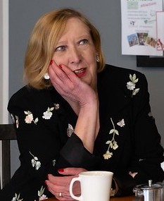 Act 2 Scene 2, black jacket with a longer blue dress (also found in a charity shop and only worn for the first time at a rehearsal a few weeks ago when fellow cast members asked me if I knew it was pretty much see through – no, I hadn’t realised that, but it seemed to fit with the Rita vibe) and the jet necklace and earrings again.