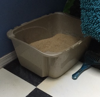 When I stopped at the vet’s the other day to pick up her renal cat food, the assistant suggested trying a lower box.