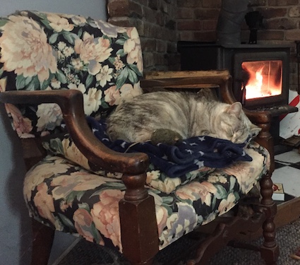 Yes, Maisie on my lap. Look at those blue eyes! She didn’t stay long. Soon after I managed to take this photo, she moved to the top of the chair. Jean tells me Maisie hasn’t been much of a lap cat so far. Still, early days.