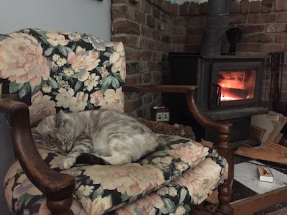 That photo must have been taken in the summer, because in the winter months that chair, which sits beside the woodstove, became his sister Angie’s domain.