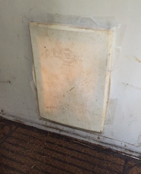 Before Maisie came here to live, I had to get the cover on the cat flap so she could be kept inside for a couple of weeks to bond with the place. It’s so long since the cover has been on the flap that I had to use rather a lot of tape to secure it.