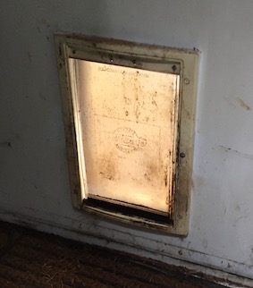 When she emerged the second time, I put her in front of the door, pushed the flap from the bottom. In she went. Five minutes later out she came again. By George, she’s got it!