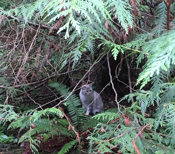 Then back to the house to attempt re-entry. Unfortunately, she tried pushing the flap from the top, which doesn’t work, and when it didn’t she was back under the deck.