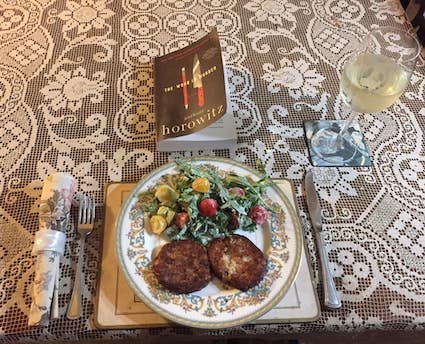 It was down to this, The Word Is Murder, or another mystery by another author of whom I’d never heard. I had a nice pile of Christmas books beside the bed and didn’t really need to add to it, but I couldn’t come to Qualicum Beach without buying one book from this shop. I took both to the counter and held them up for the woman working there that day. “Which one?” I asked. She told me she didn’t know anything about the second book (I’ve already forgotten what it was), but the owner had loved the Horowitz. “It does,” I conceded, “sound interesting, particularly him inserting himself into the novel as a character.” She looked surprised when I mentioned this. Well, it is surprising. So I bought it.