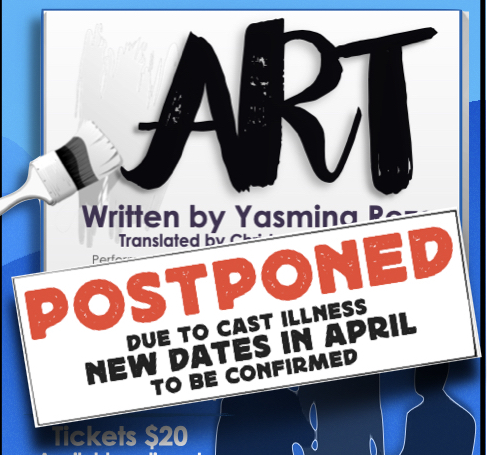 We’ve been rehearsing ART by Yasmina Reza for weeks and were supposed to be performing it this weekend. A friend of mine is directing. Two other friends are playing two of the three roles. I’ve come late to the game as the prompter. I wasn’t expecting to be needed this weekend, as all three of the actors have their parts nailed.