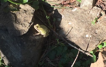 Spotted him just as I was about kneel down right beside him to take care of one of the lilacs. Surprisingly, my presence didn’t seem to bother him one bit and he was still there enjoying some sun when I’d finished.