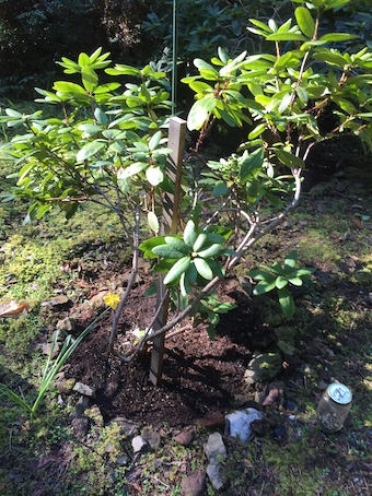 Then I received an email from Rhodo Dave informing me that it was time for the rhododendrons to have their first feed. This may be a big job at his place, where there are hundreds (okay, dozens and dozens) of rhododendrons, but I only have six (plus three lilacs and a hydrangea that get the same food). That was manageable.