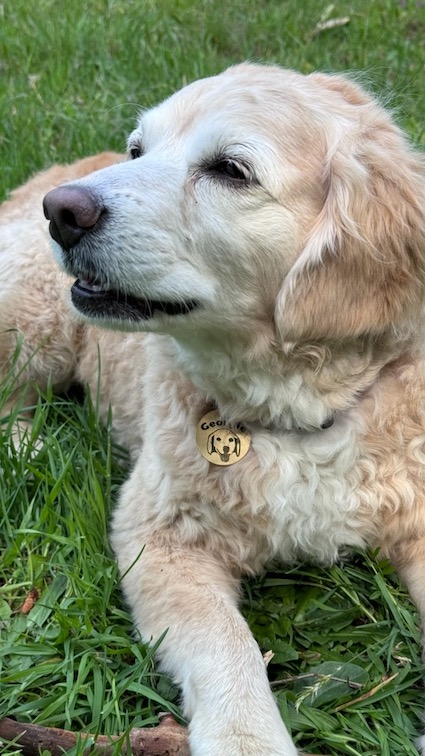 Georgie, who managed to lose her old one, has a new dog tag. And it looks just like her.