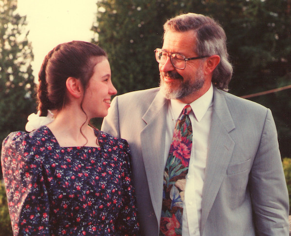 Then there were the things I folded up and put in that chest. Mostly sweatshirts and t-shirts, but there were also four of his many ties. One was a flowered one, his mother had given him before we met. The other three were ties I’d given him: a Humphrey Bogart tie and two Van Gogh’s – starry night and the café terrace at night. I should have taken a photo of those ties before I put them in the bag, but I didn’t. I have, however, just managed to find a photo of him wearing the flowered one to his daughter’s graduation.