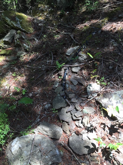Bad news, I’m afraid. It seems the unburied pipe goes well past the top of the slope, probably all the way to the well. Exposing this will take a fair bit of time and a lot of shifting of small fallen trees (which will probably require a saw) and large branches. A lot of work, but I can do that.