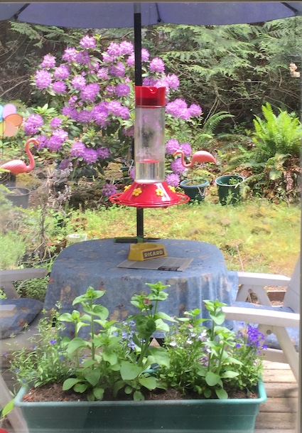 Especially when, as was the case a moment before I snapped this photo, there was not one, but two hummingbirds at the feeder.