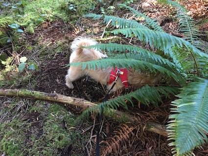 When Jean asked me, shortly after Dexter came into her life, if I would be willing to take him for a walk on the days she was working from home, I said sure and he came with me very willingly. We did beach walks; we did wooded walks. Then one day, as soon as I unclipped his leash, he stopped dead in his tracks. A bit of cajoling (tummy tickles were helpful) seemed to do the trick and get him moving again. Commented on this to Jean when I got him home. We just assumed he was a bit of a chancer.