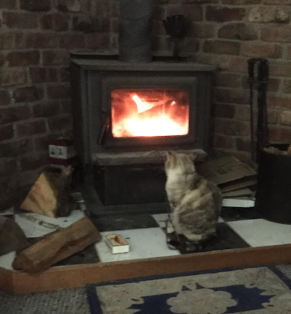 It was cold enough to get the fire going for the first time the other night. Maisie approved.