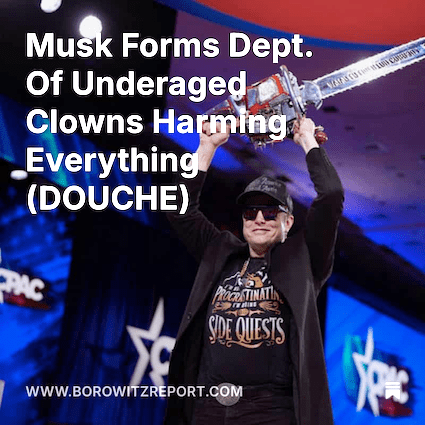 Eight years ago, I was writing almost daily about the latest “you couldn’t make it up” nonsense from the Wankmaggot Oval Office. That was then. You simply can’t keep up with Wankmaggot 2.0. The mad executive orders, the insane (and dangerous) cabinet picks that the deplorable, ass-licking Republican senators have confirmed, the havoc Elon Musk and his band of teenage mutant hackers are wreaking on public services and the lives of the people who provide these services.