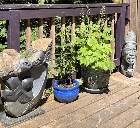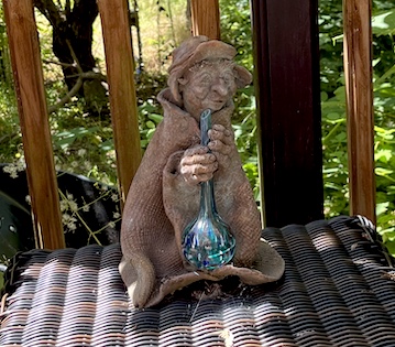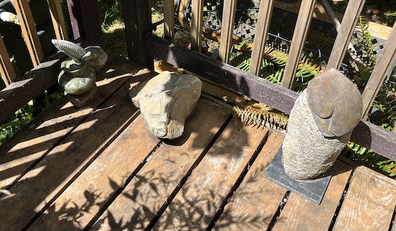 There are a lot of sculptures as his place. Inside, outside, on the porch, on the deck.