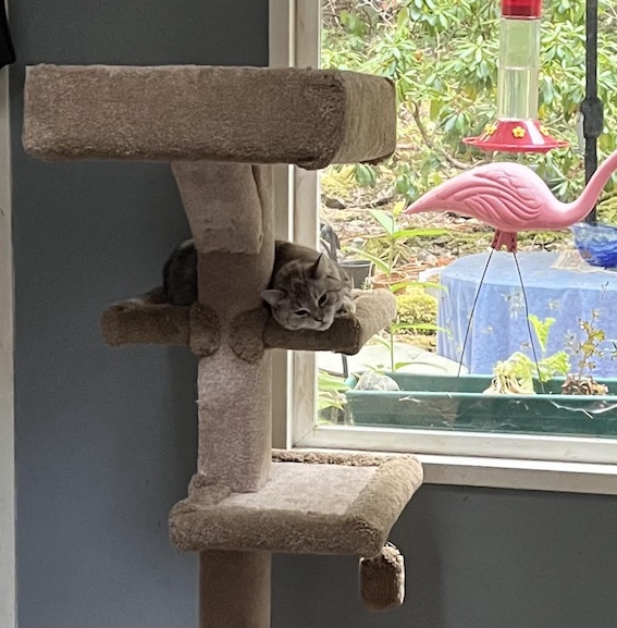 But Maisie’s Afghan-proof tower (which she loves) had been moved from the kitchen here to the bedroom there.