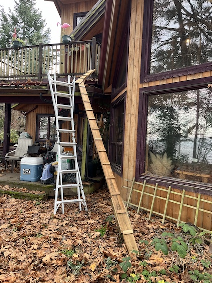 … but Maisie now has a ladder to get from the newly installed bedroom cat flap to the garden.
