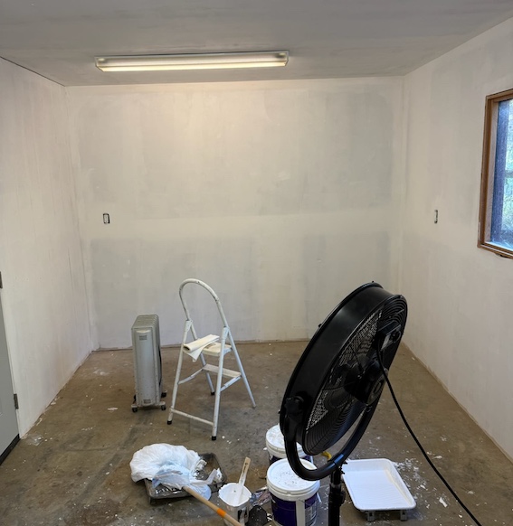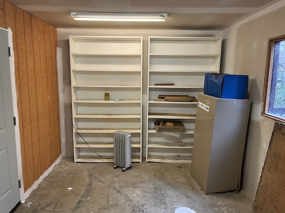 “Wait,” I said. We had talked a while ago about the possibility of dividing the garage in two to have an actual room at the window end. That was supposed to be down the line sometime. I told him it needed to be shifted up the line. A handyman was summoned.