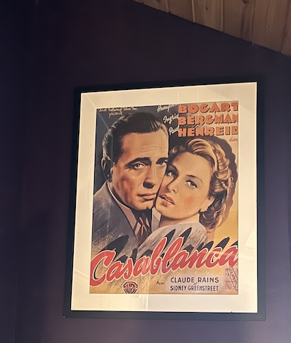 And then there’s the art. Something I’ve mentioned before. There was an agreement that when the time came, when I was ready to move in, he would take down all the art, I’d bring mine and together we’d decide what went where. It hasn’t happened exactly that way. For one thing, my moving in has been gradual. But art has been creeping in. There were the travel posters back in August. And just before Christmas, Casablanca made its way into the bedroom.