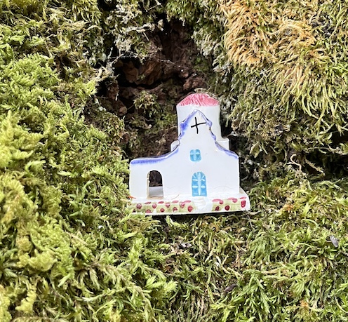 On a subsequent trip with her sister, she bought more. I bought her some. By the time she died – way too young – in 1988, she had quite the collection. I gave a number of them away as mementos to a group of her friends, but I kept half a dozen. They sat on the dining room windowsill for the past 20 years. I’ve even added a couple of things – a ceramic Greek church picked up on a trip to Zakynthos, salt and pepper shakers in the shape of Dutch tall houses. They looked cute on the windowsill, but did I really want to move them to my next home?