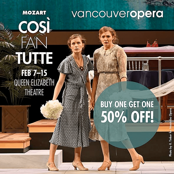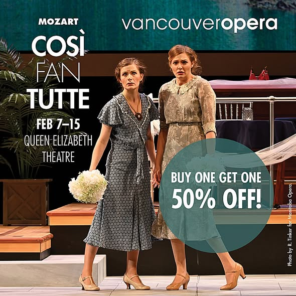My Facebook feed has been full of ads for Vancouver Opera’s production of Cosi Fan Tutte. Almost non-stop. Now, I like me a bit of Mozart, including this somewhat problematic opera, but going to see it in Vancouver would be a major production. Okay, in theory you could get the fast foot passenger ferry over in the morning, see an opera matinee and get back the same night, but that’s a bit much. Although not as much as going to an evening performance and having to pay for a hotel – as nice as it might be to go to the big city. Anything good on at the Art Gallery? Well, actually, yes. But still.