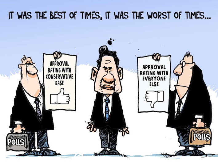 Post convention, he has become quite conciliatory. Let’s work together for the good of the country, blah, blah, blah. You buying it? Me neither, although it makes a nice change. The last thing the Conservatives want is a spring election, which they could in theory force. Not only is Pee Pee unpopular with the general population, a lot of Conservatives (you know, the remnants of the progressive ones) really like Carney and would probably vote for him to stay in power.