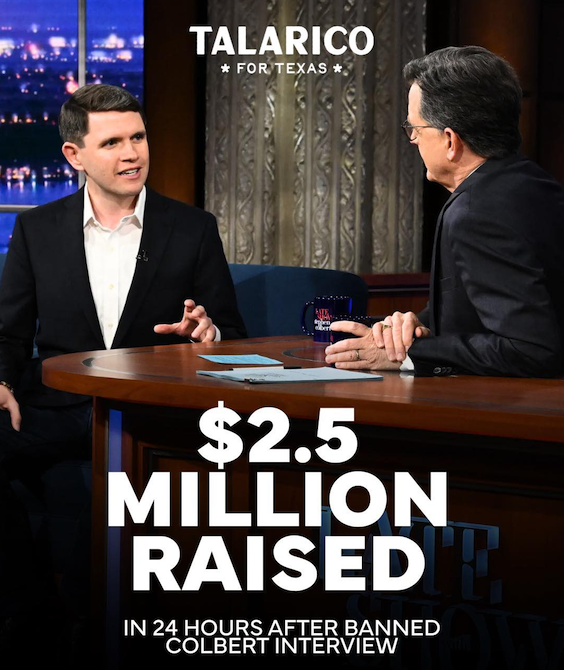 If you haven’t seen the show, you’ve probably heard about it. On Monday night Stephen Colbert planned to interview James Talarico, a Texas representative who is competing with Representative Jasmine Crockett to be the Democratic candidate to challenge Republican John Cormyn in the mid-terms for his Senate seat.