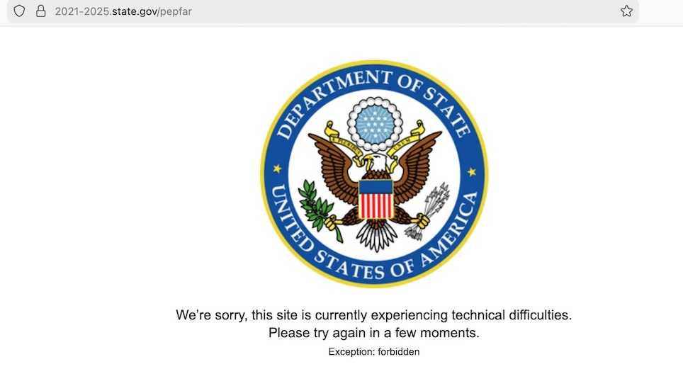 Every Administration since has continued to support PEPFAR. It’s an incredible program. (Seriously, click on the link to see what the program has been doing.) Or rather, it was. If you now ask about the program on the State Department website, this is what you get.