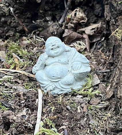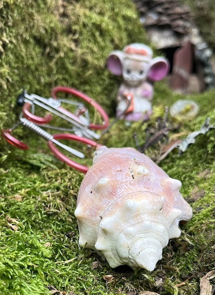 And, down near the roots, almost buried by leaves and encrusted with mud, I find two little cyclists. Obviously they need rescuing and repositioning.